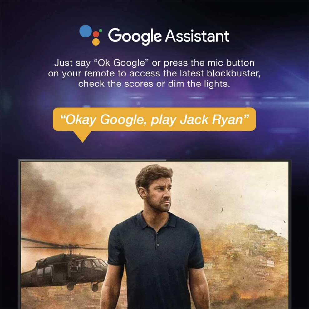 • - GOOGLE ASSISTANT: Just say "Ok Google" or press the mic button on the remote to quickly find the latest movies, check the football scores or control home devices.