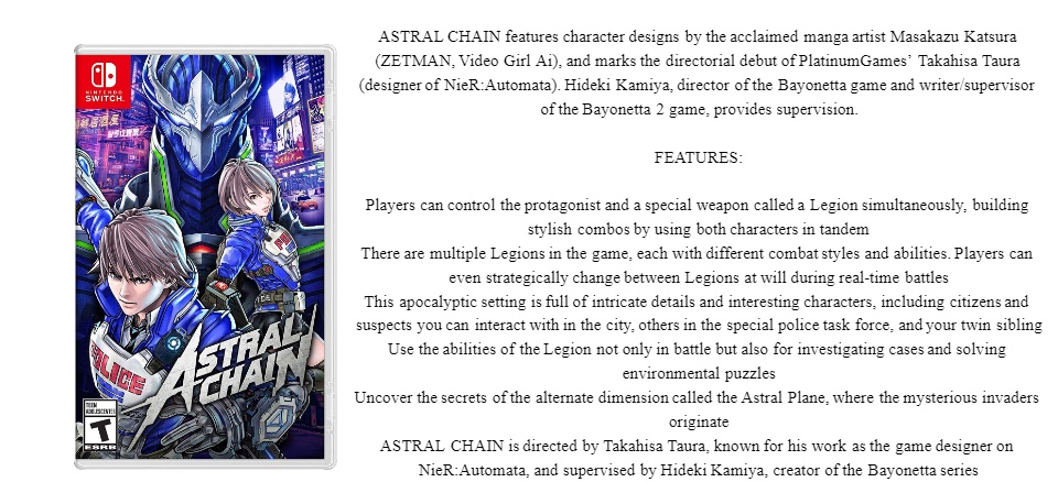 Thegame gives you full control over two characters at once for thrilling Synergetic Action, courtesy of PlatinumGames. Alternate between several Legion types and skills to save the world your way.